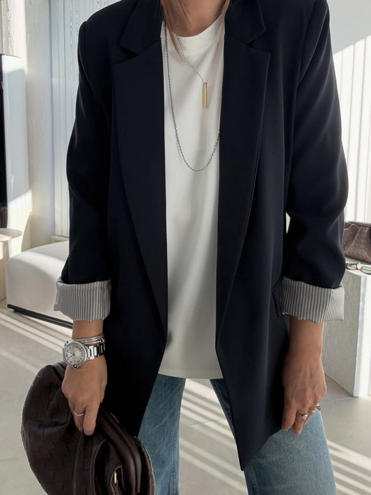 Oversized blazer with striped lining-black