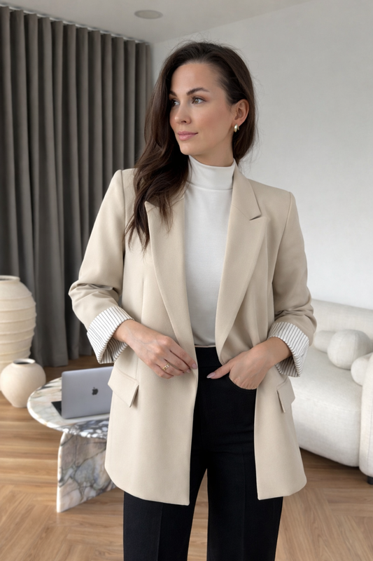 Oversized blazer with striped lining-beige