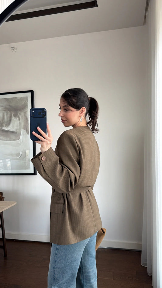 أُوكَازيُونStriped blazer with side belt