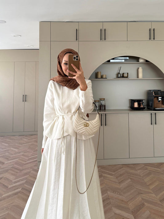 Arna Brooch Detail Pleated Skirt Set pearl white