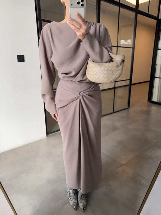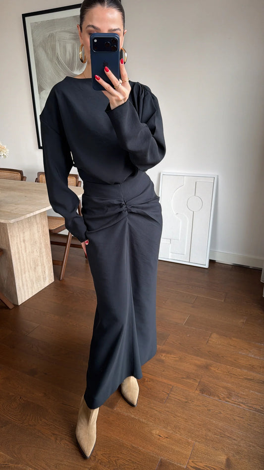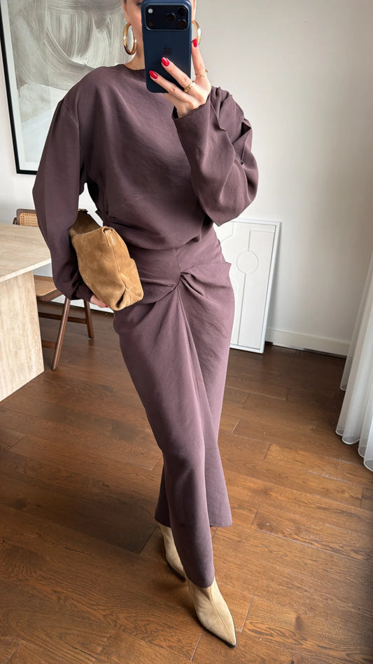 ASYMMETRICAL BLOUSE AND RUFFLED SKIRT SET