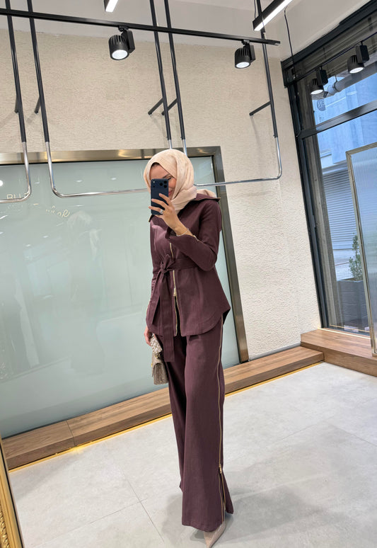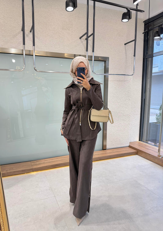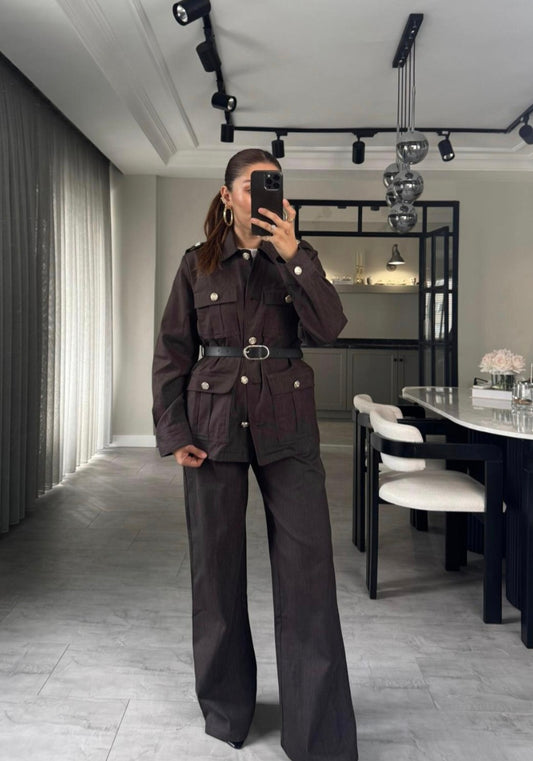 Brown Belted jeans co-ord set