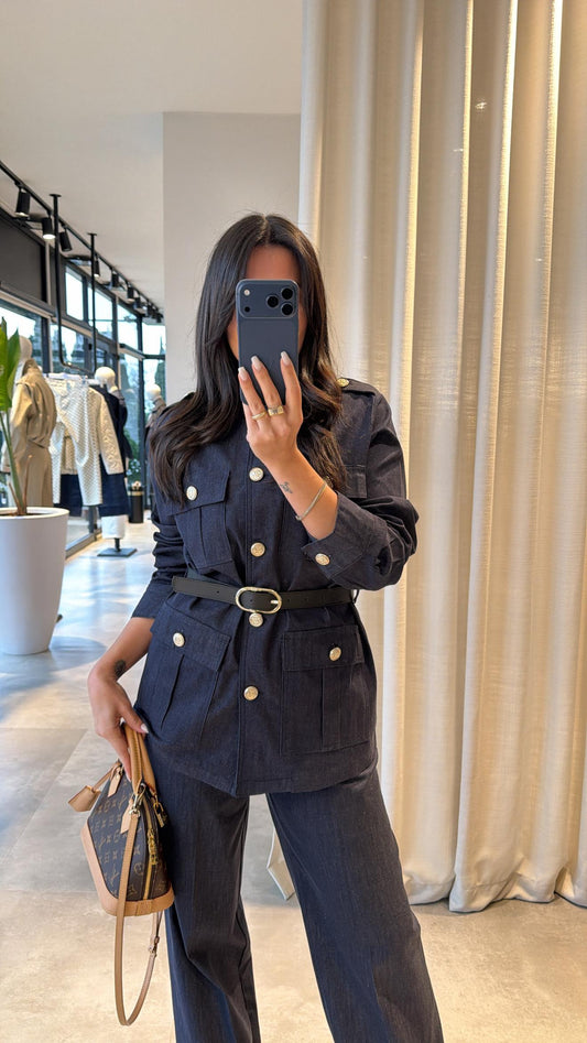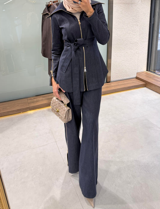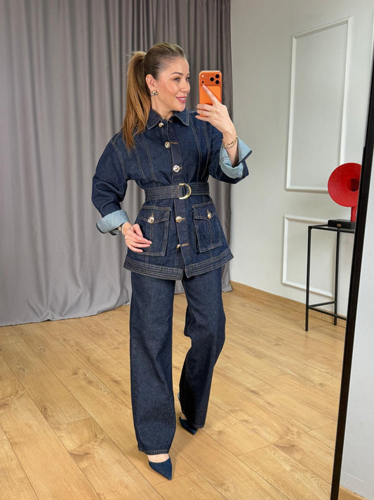 Belted double Pocket jeans suit