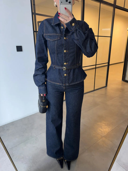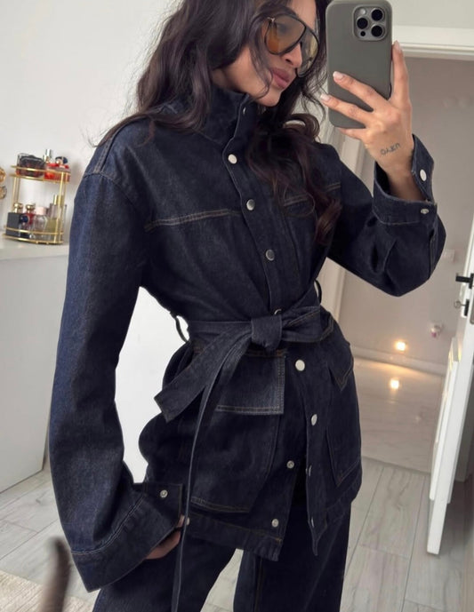 Belted jeans jacket ,straight leg trouser co-ord set