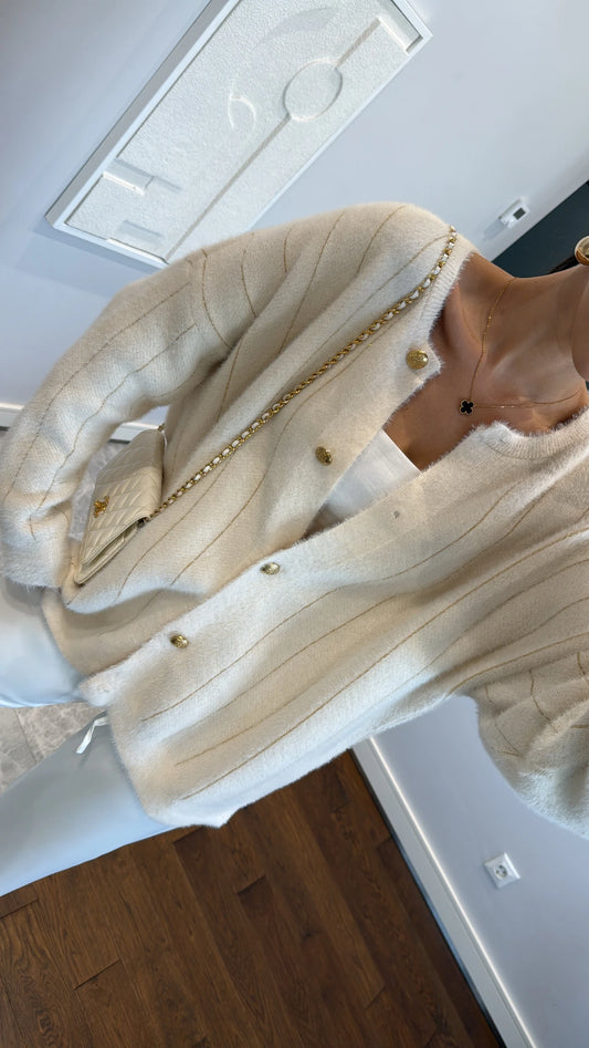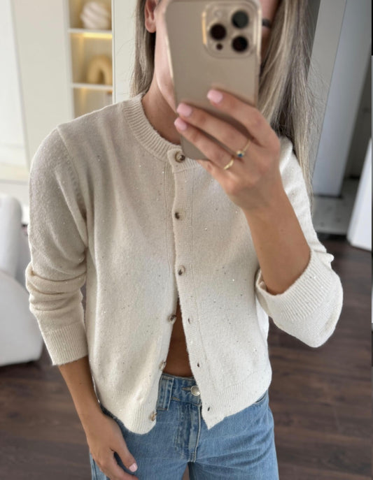 BUTTON DETAIL GLITTER CARDIGAN-off white