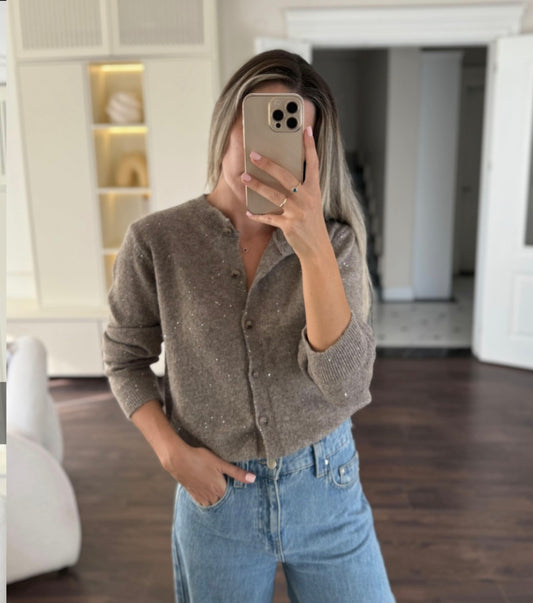 Wool cardigan with glitter pieces