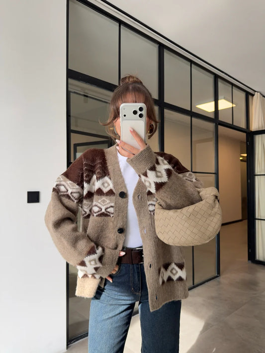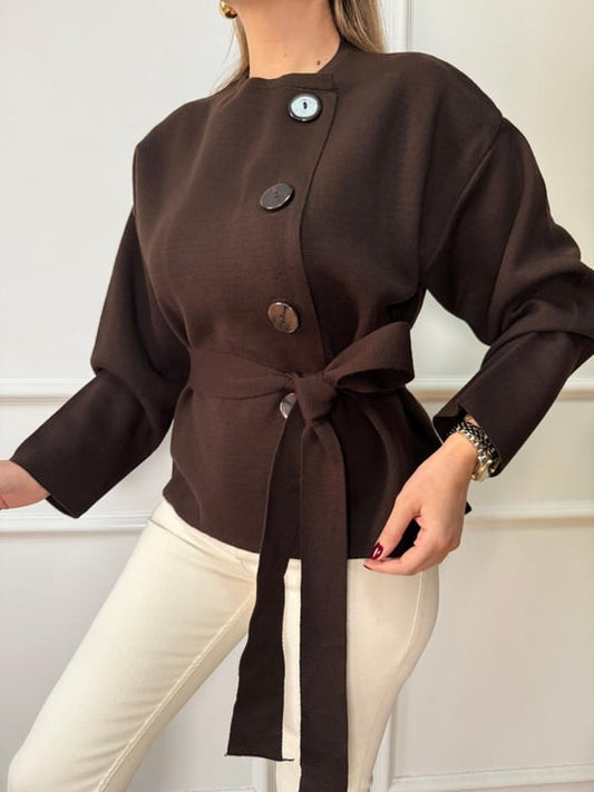 Brown Knit Cardigan with Tie Front