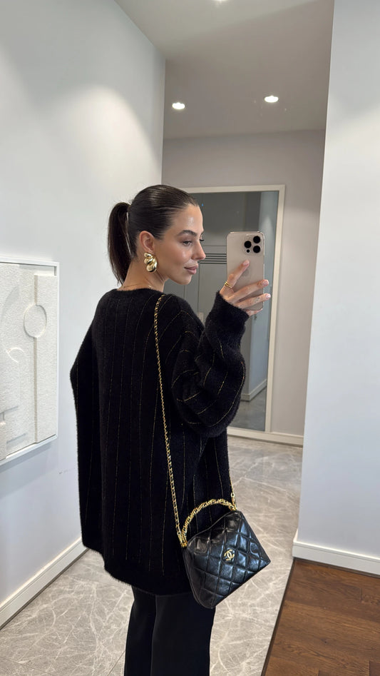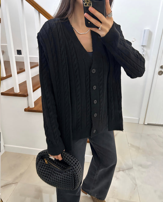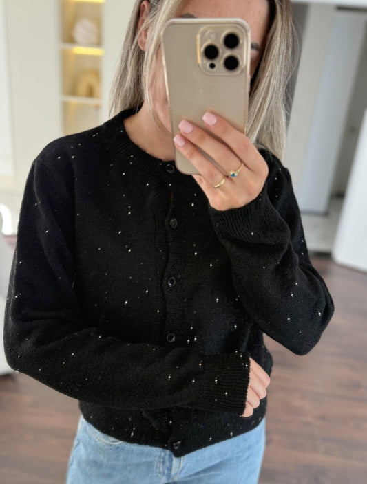 BUTTON DETAIL GLITTER CARDIGAN- black