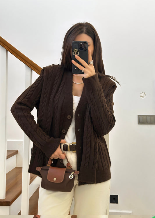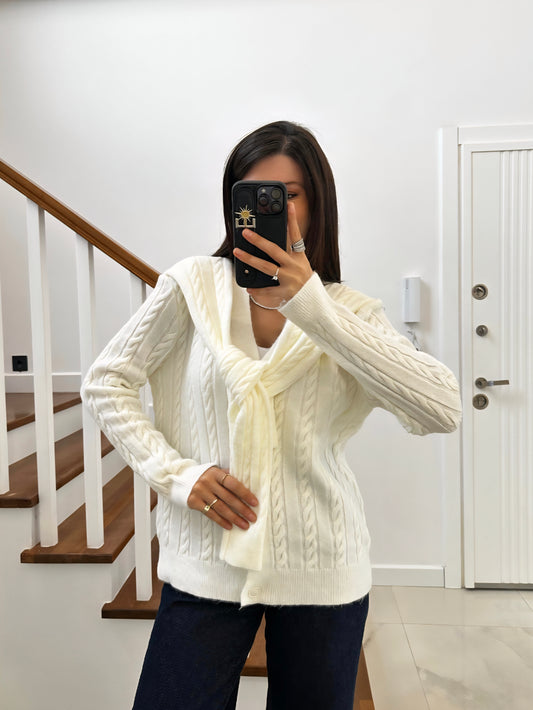 Wool Cardigan with attached scarf