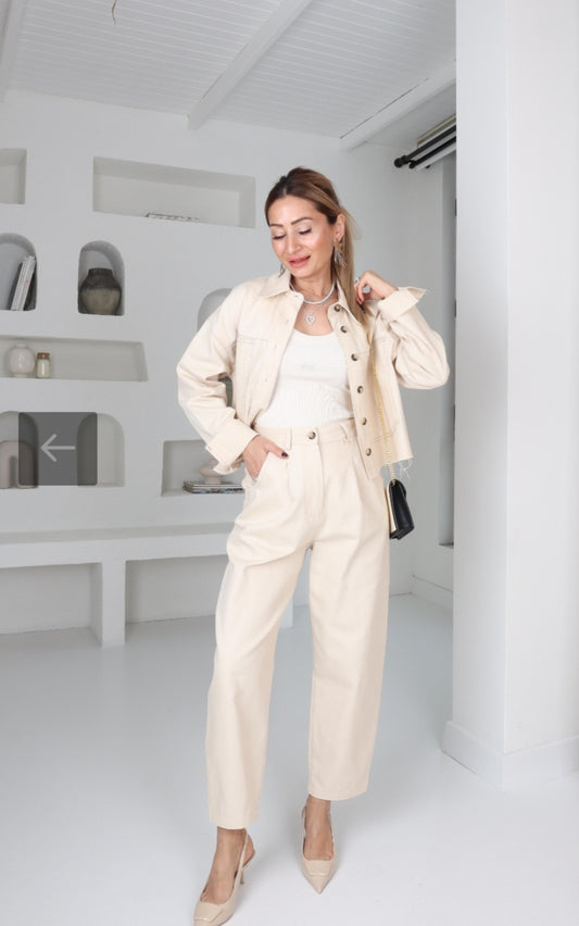 Safari jacket with drawstring High-waisted pants with a wide elastic Two-Piece Set