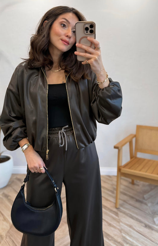 Brown parachute fabric Equivalent Knitted details Set with oysho fabric Trim