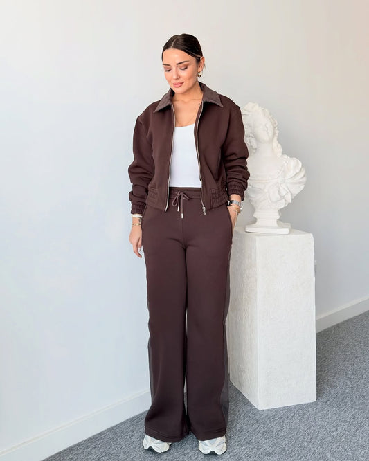 Nowri Velvet Garnished Coffee-Red fleece Tracksuit (warm inside)