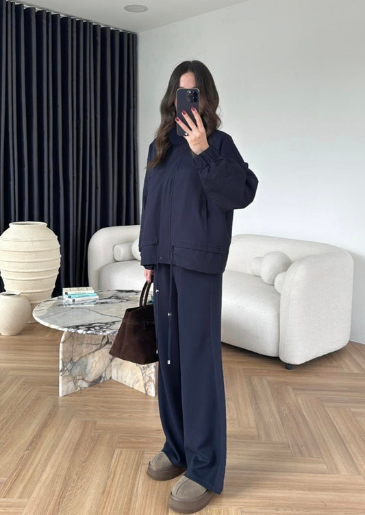 Navy Blue parachute fabric Equivalent Knitted details Set with oysho fabric Trim