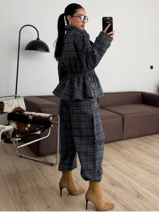 Check Peplum Wool Blend Jacket whit straight trouser co-ord suit