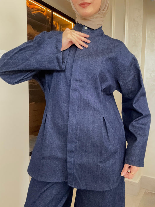 Denim details Garnish Two-Piece set - Navy blue