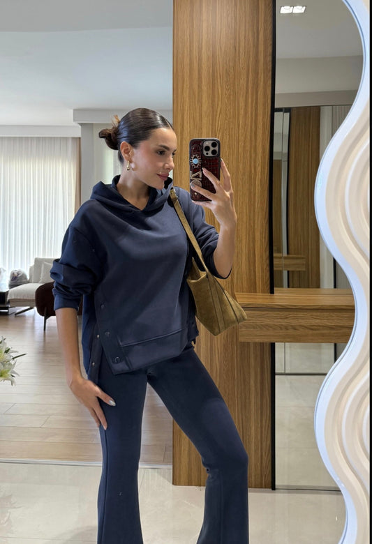 Oysho fabric Cropped hoodie with side snaps, slim bootcut pants with side slit set