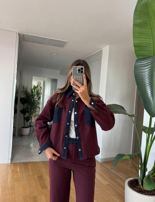 Denim details Garnish Two-Piece set - burgundy