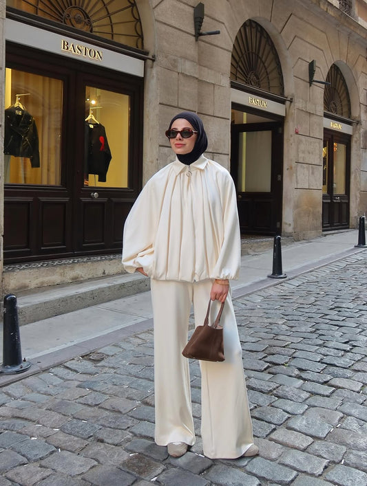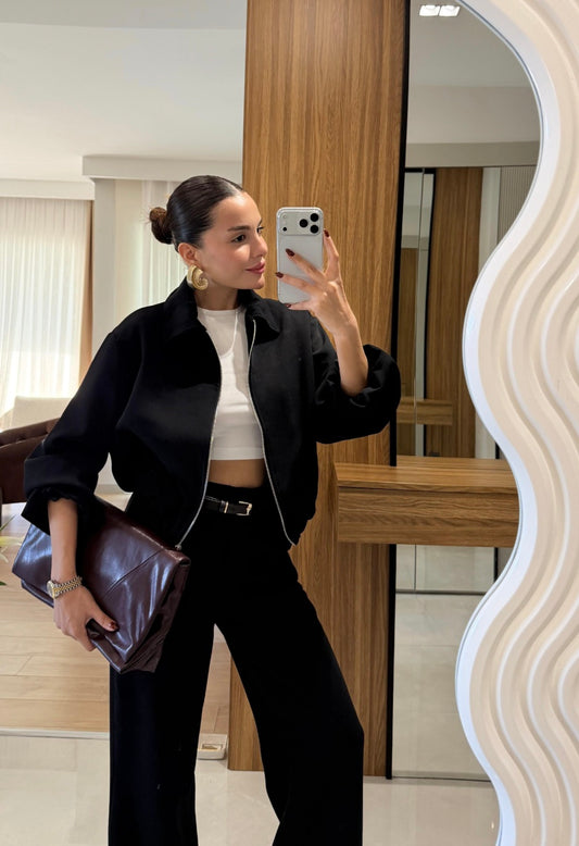 Bomber jacket wide leg trouser modal fabric co-ord set