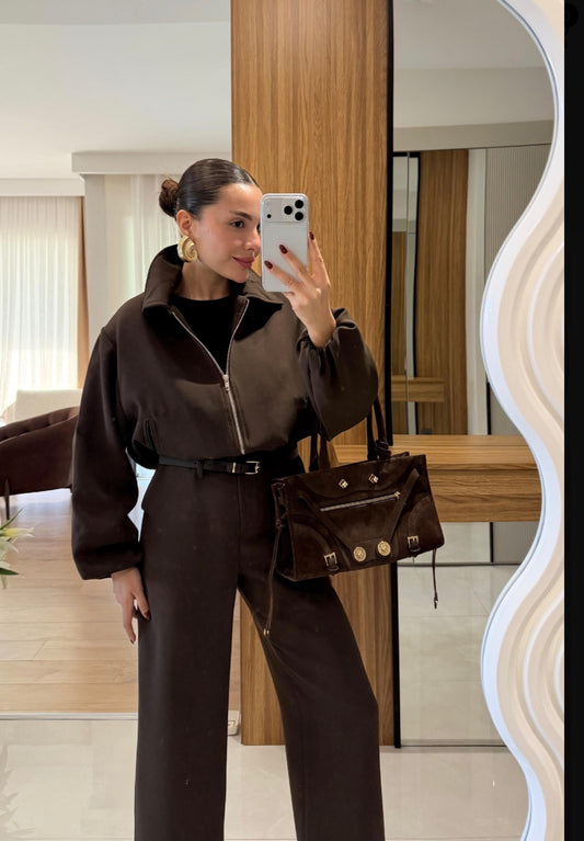 Bomber jacket with belted trouser co-ord set