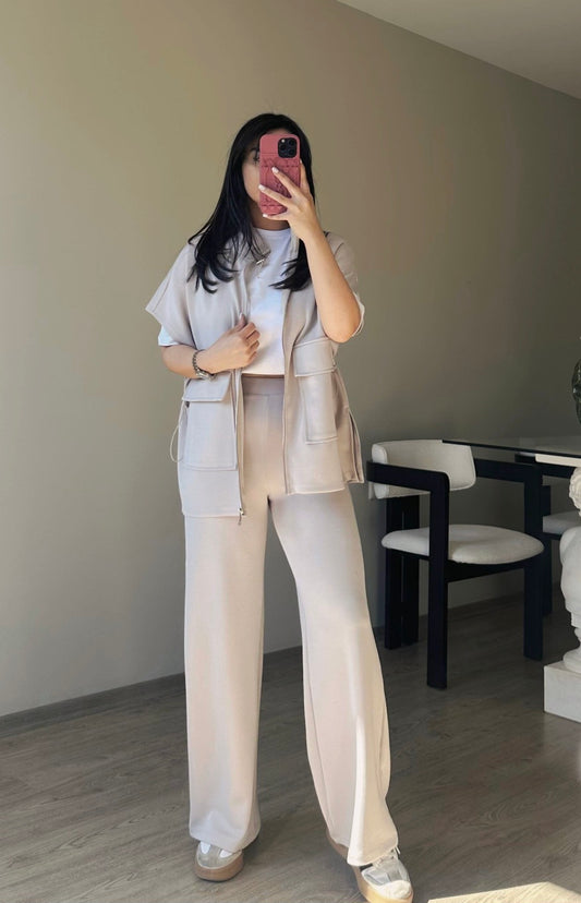 Bomber jacket wide leg trouser modal fabric co-ord set