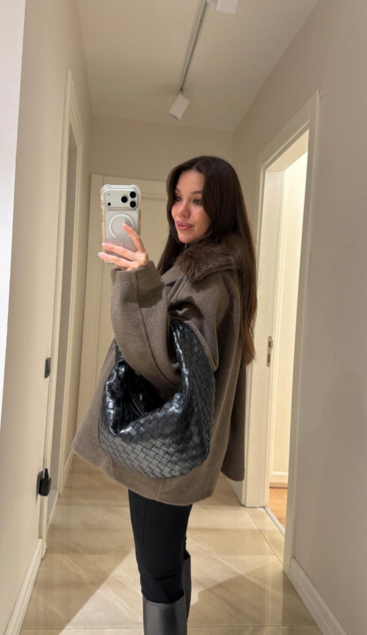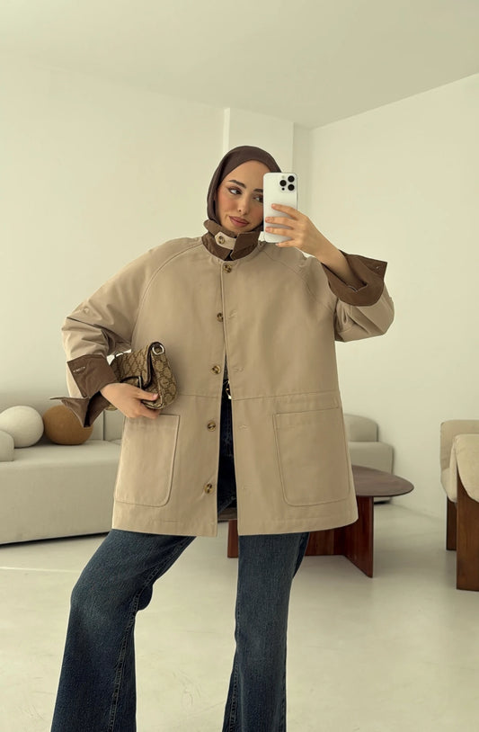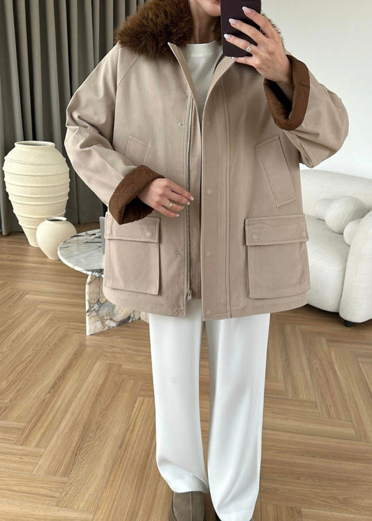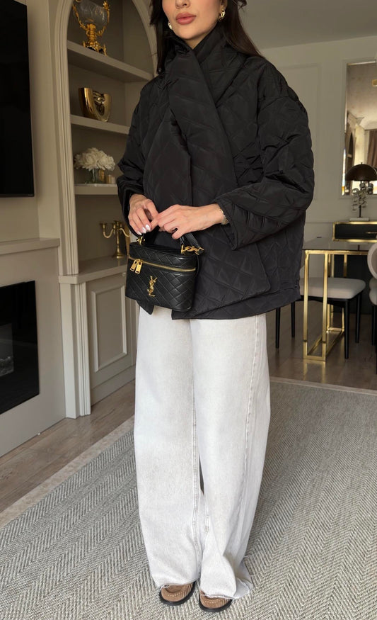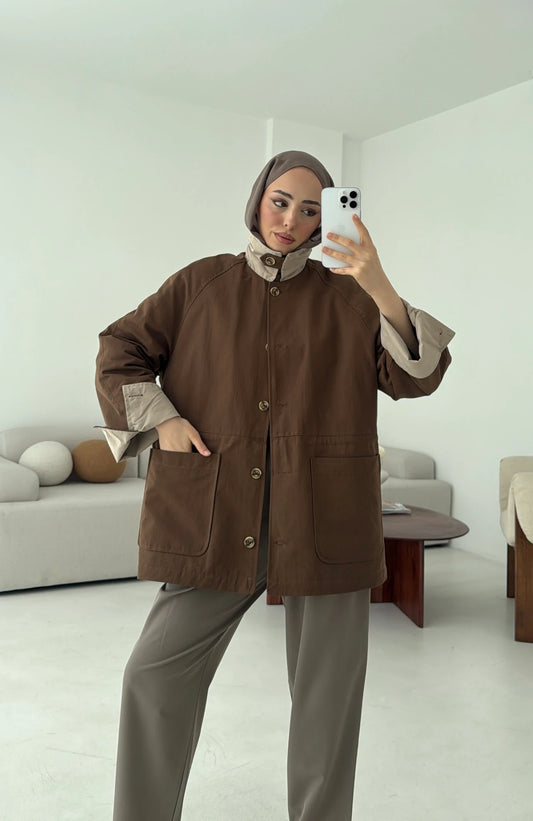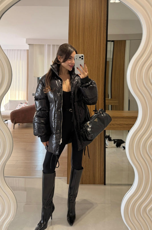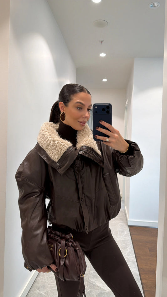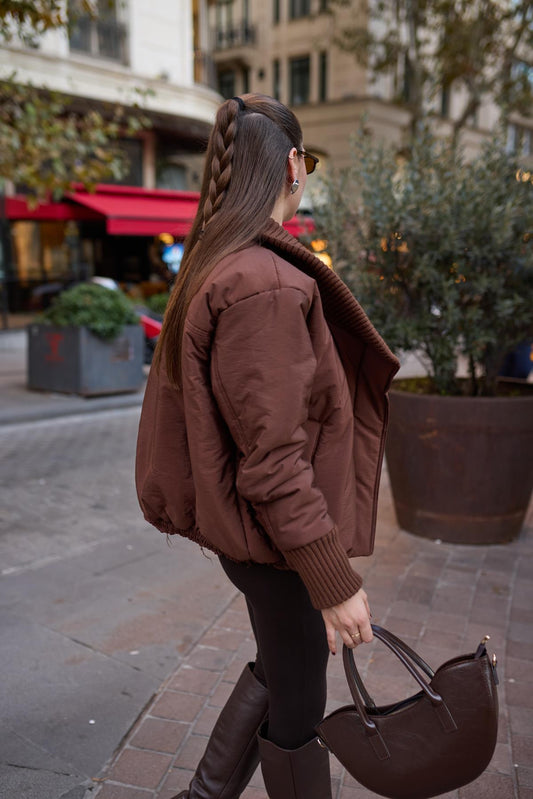 Coffee Brown Bomber Padded Jacket with Elastic Waistband and Drawstring