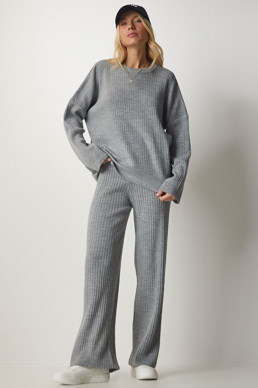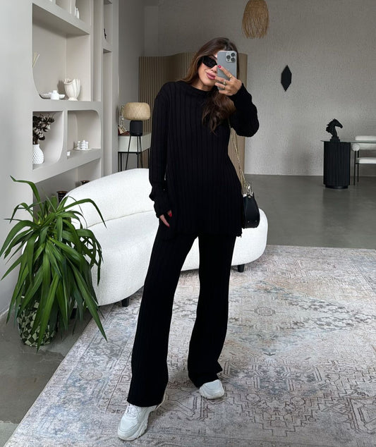 Knitted set with stitching details