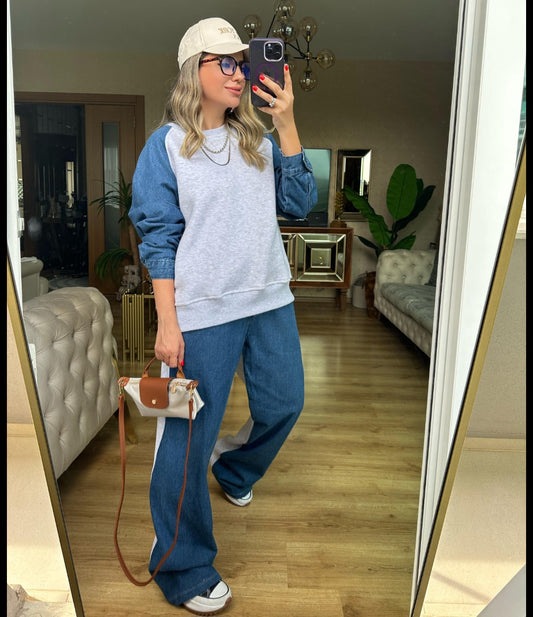 Contrast Fleece with jeans tracksuit