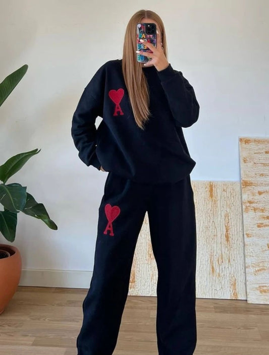 Fleece tracksuit with ami logo