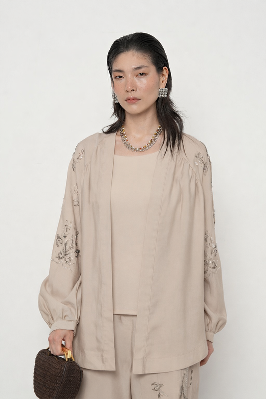 Khaki premium Rhinestone Embellished Two-Piece Set