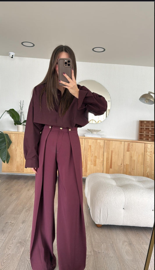 Pleated pants with gold buttons