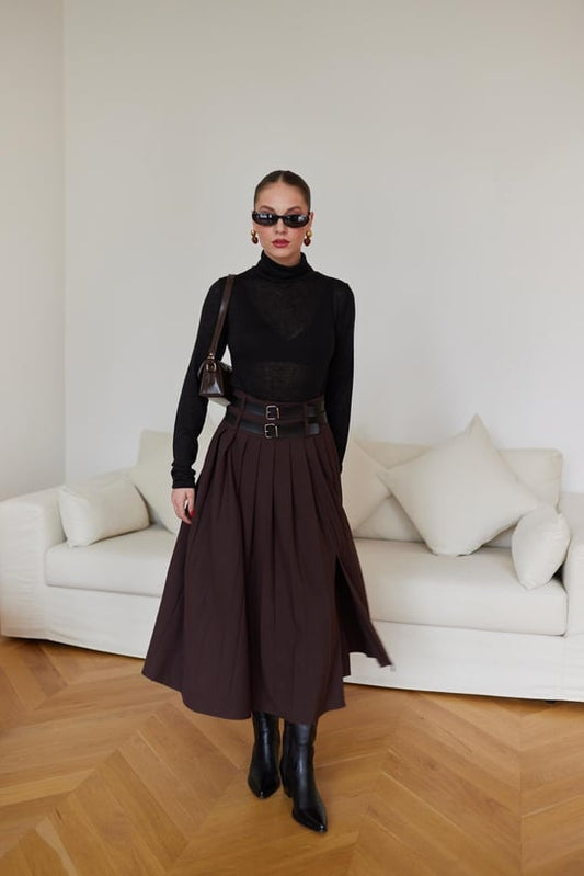 Sold outDouble belt pleated skirt