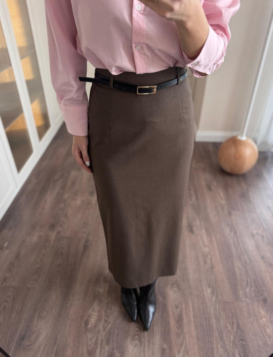 Belted midi skirt