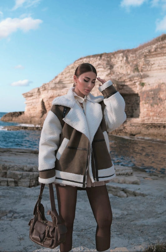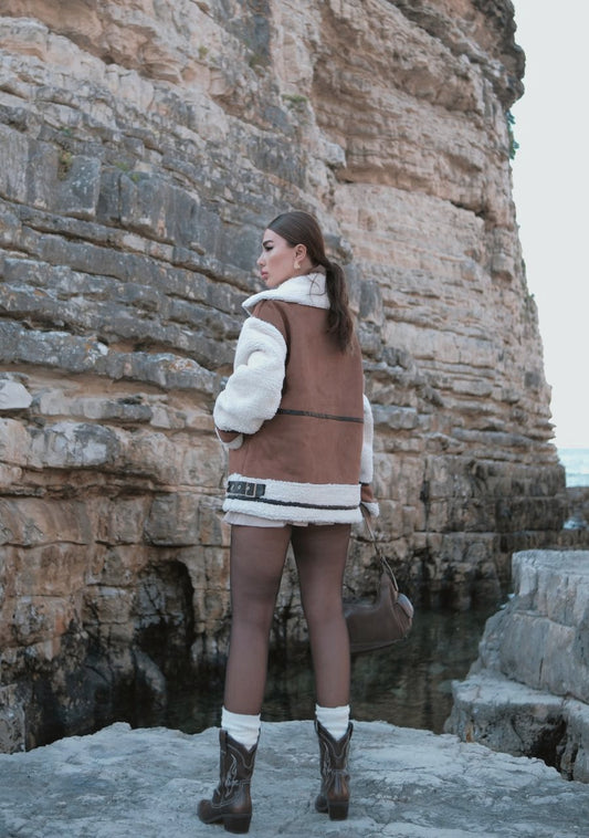 Suede Faux Jacket with Fur Sleeves