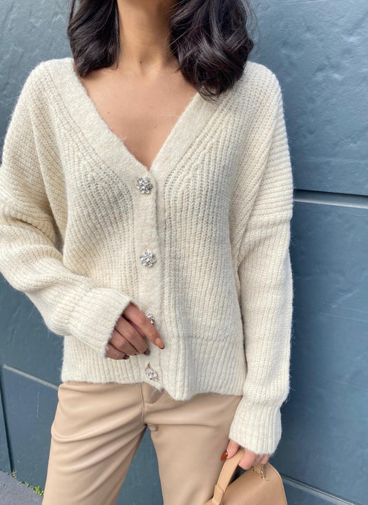Knitted Cardigan with Strass Buttons