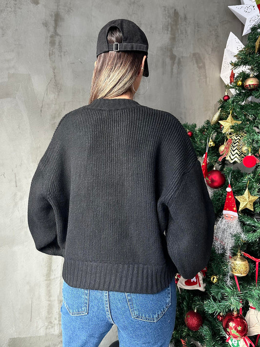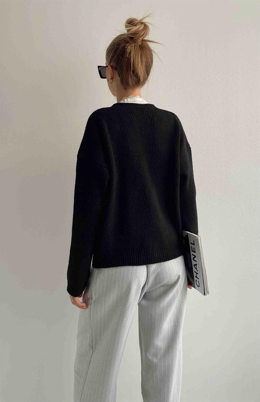 Knitted Woollen Cardigan with Strass Buttons