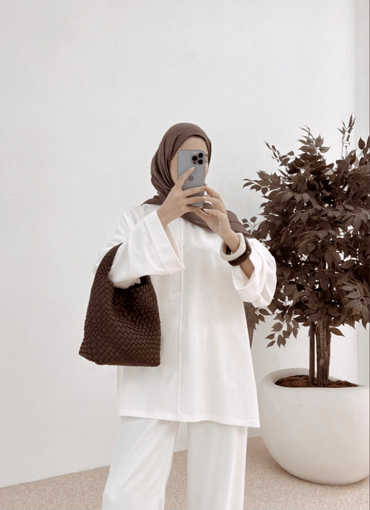 Belted Wide sleeve sweatshirt with side slit (ultra white )
