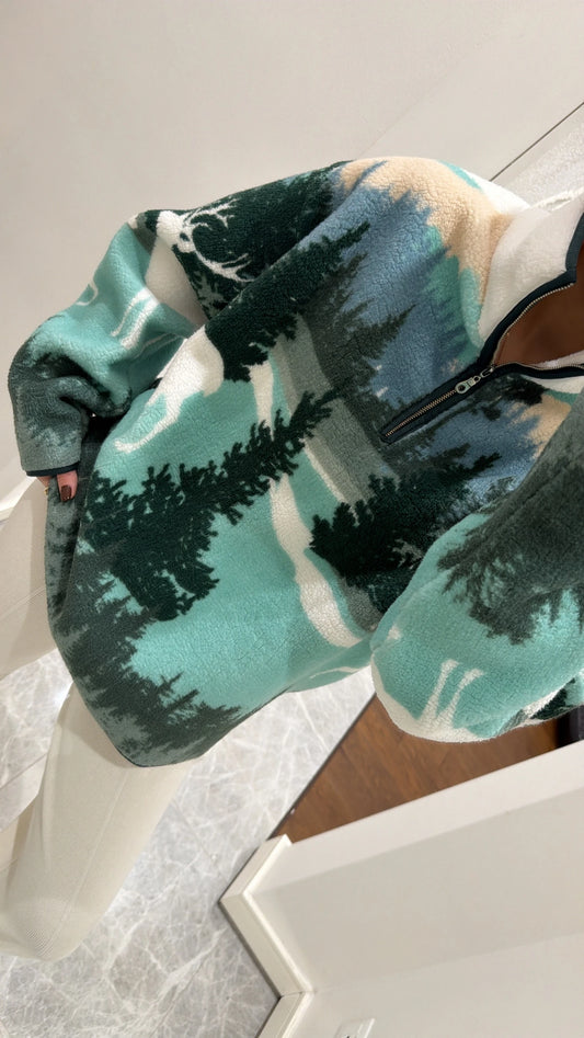 Zippered printed sherpa Sweatshirt