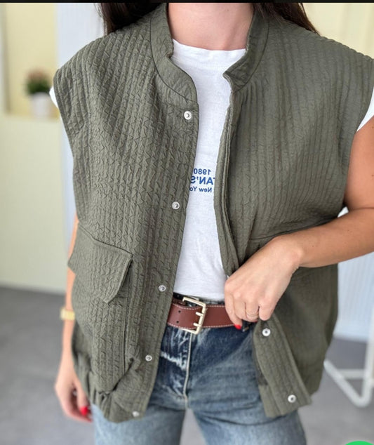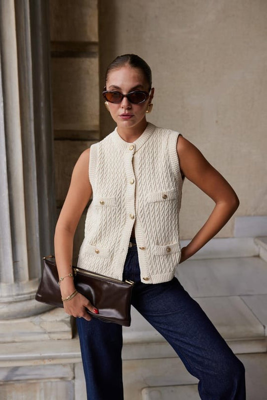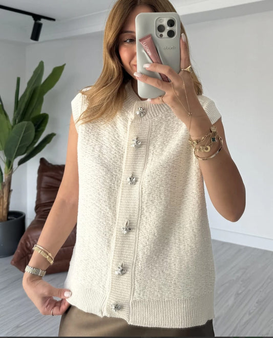 Premium Quality Sleeveless Knitted with Gold Buttons