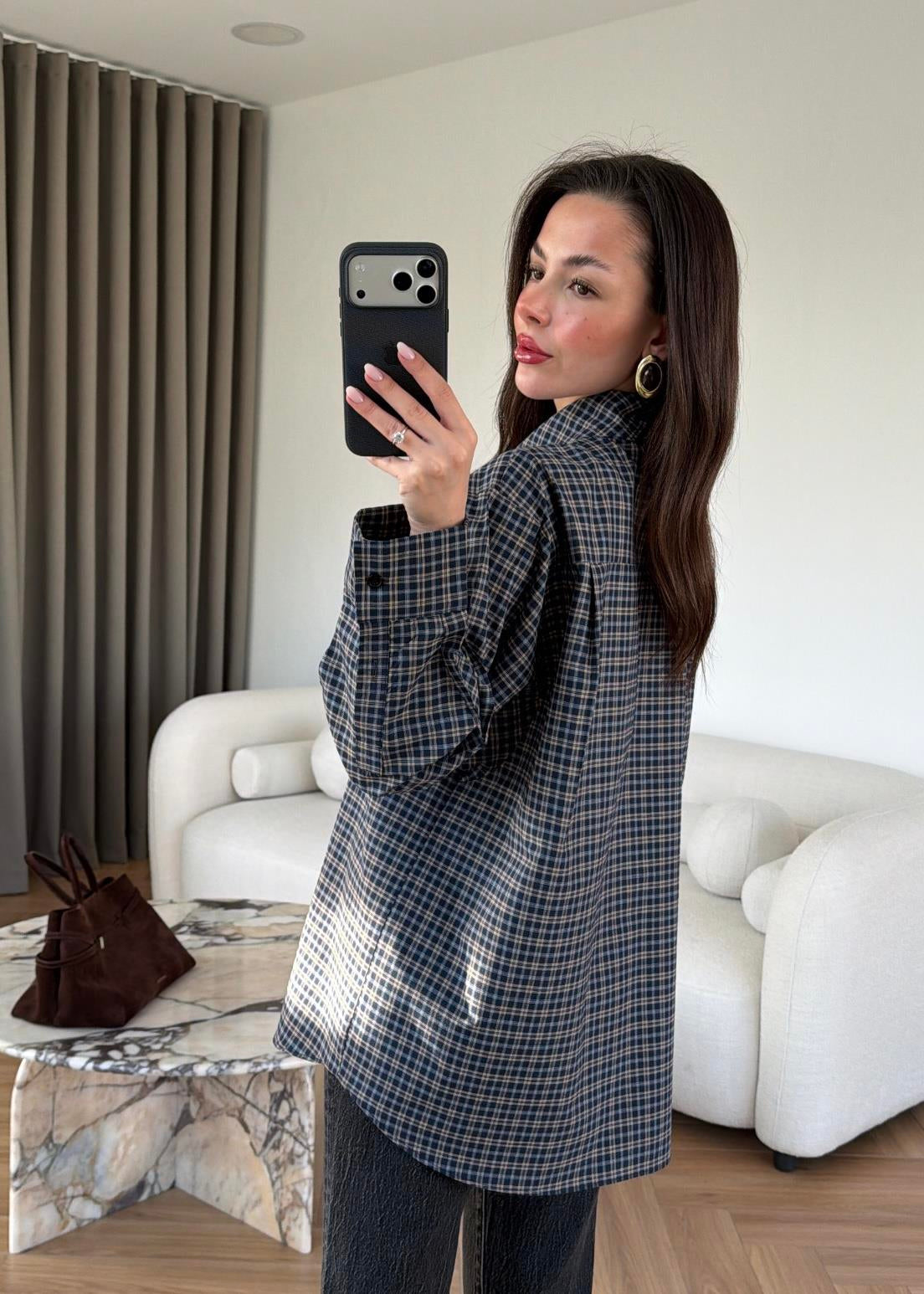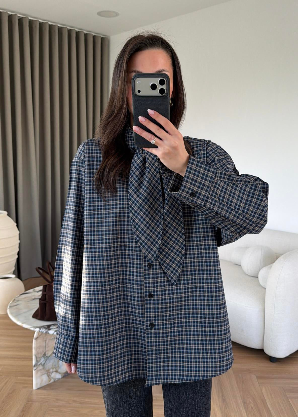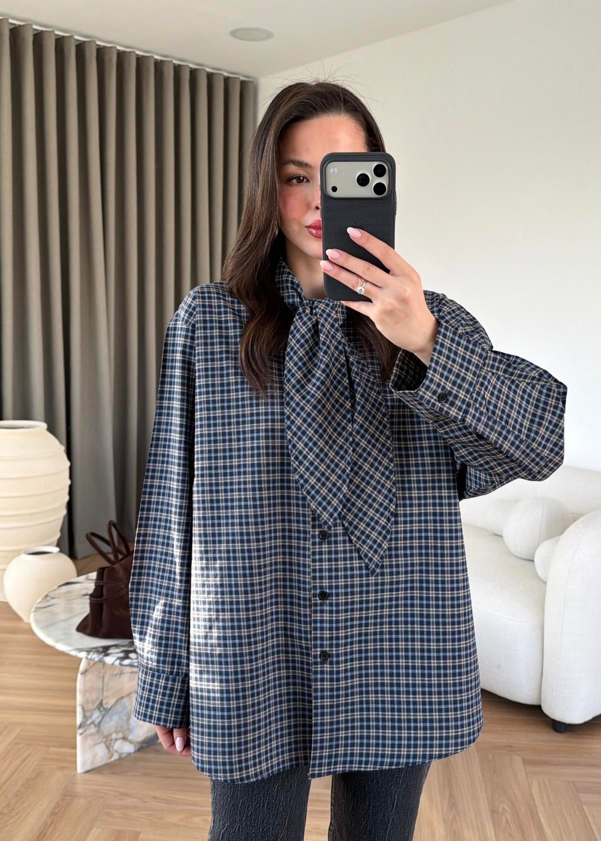 Navy Blue Shirt with Tie Collar